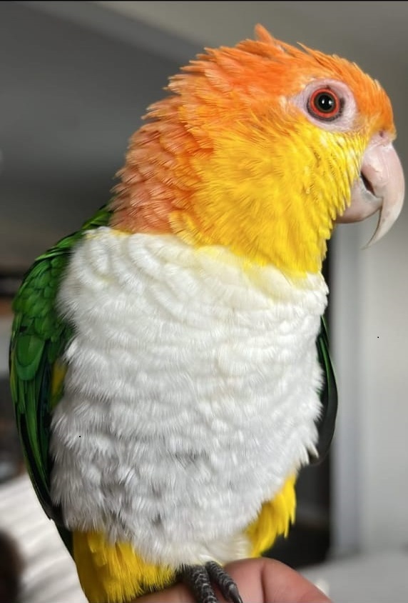 WHITE BILLED CAIQUE : The White-billed Caique is a vibrant and playful parrot known for its striking colors and energetic personality.